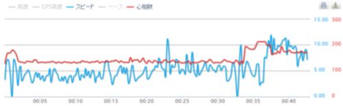 脚は軽いんだけど、やっぱりクッションがない分、負担が大きいな。最初から頑張るとすぐ脚が痛くなりそうだったんで、最初4kmはのんびり走って、最後1kmだけ頑張ってみる作戦。のんびり走ってる間は心拍数も130bpm前後で安定。これくらいのペースだとさすが…