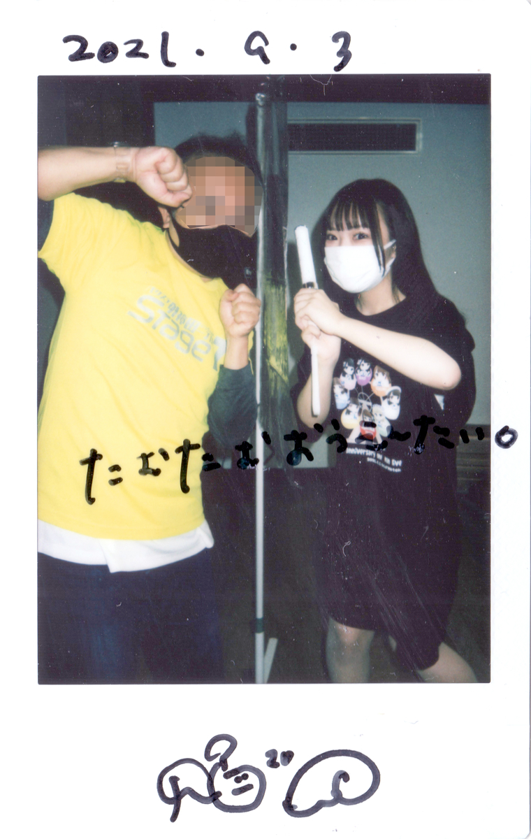 先にキンブレにサインしてもらって、それ持ってツーショ。今日はこのまま東京行くみたいだけど、全然スケジュール聞かされてなくて、何時からステージかもわかんないらしいww おいら1000CLUBに行ってる時間だろうけど、タイミングが合ったら玉投げだけでもやろう。