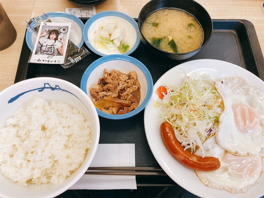 朝ごはんは安定の松屋。