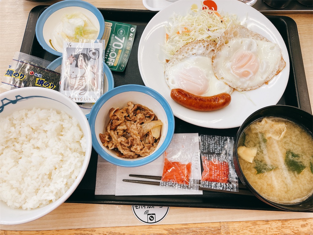 朝ごはんは安定の松屋。紅ショウガがまた小袋に戻った・・・(>_<)