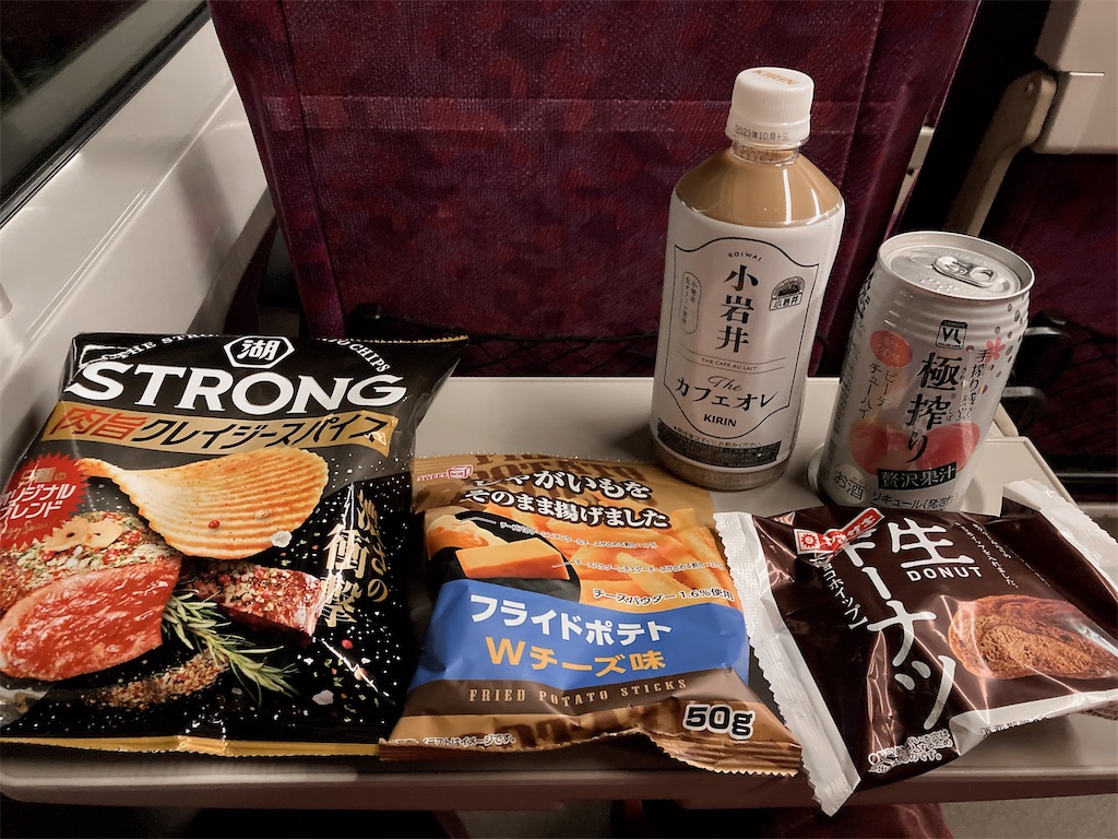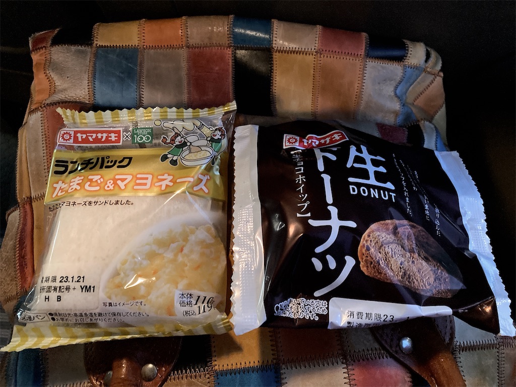 今日のもぐもぐはたまごと生ドーナツと、電車乗ってからポテチとかもぐもぐ。