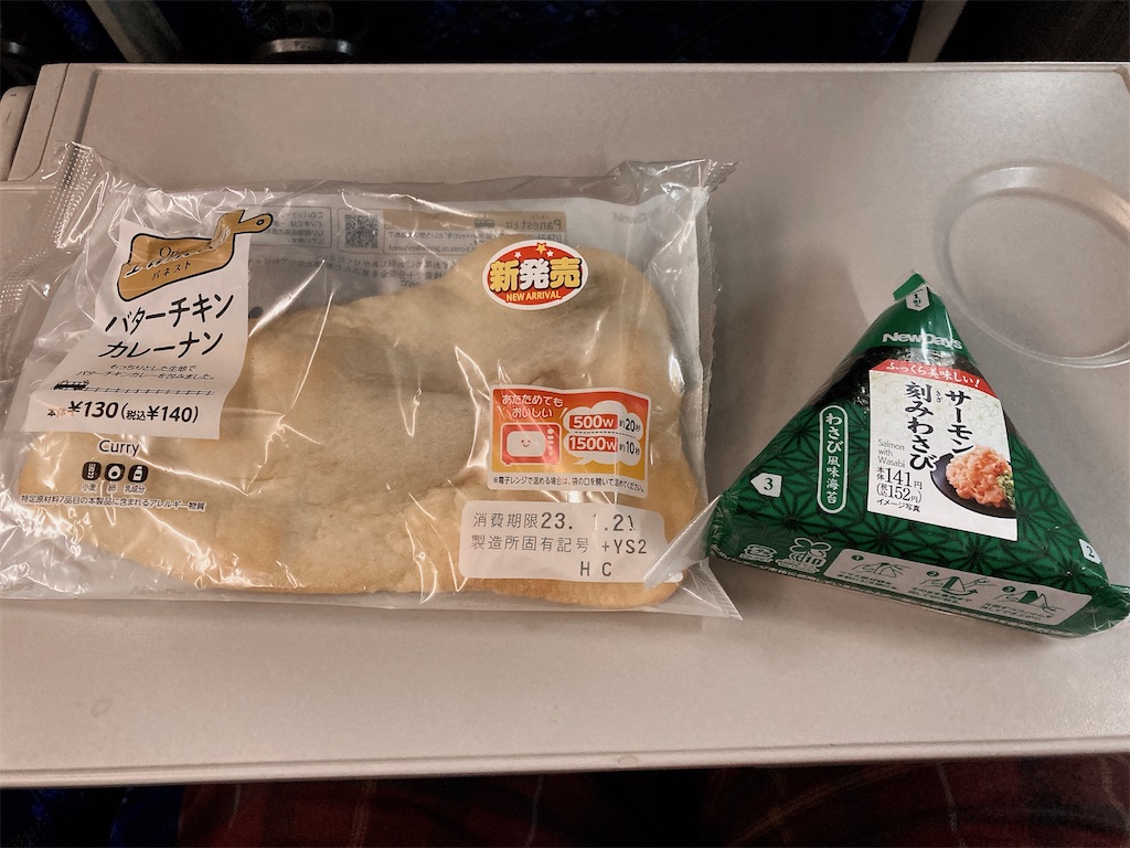 からの赤羽の乗り換えでおにぎりとバターチキンカレーナン追加←
