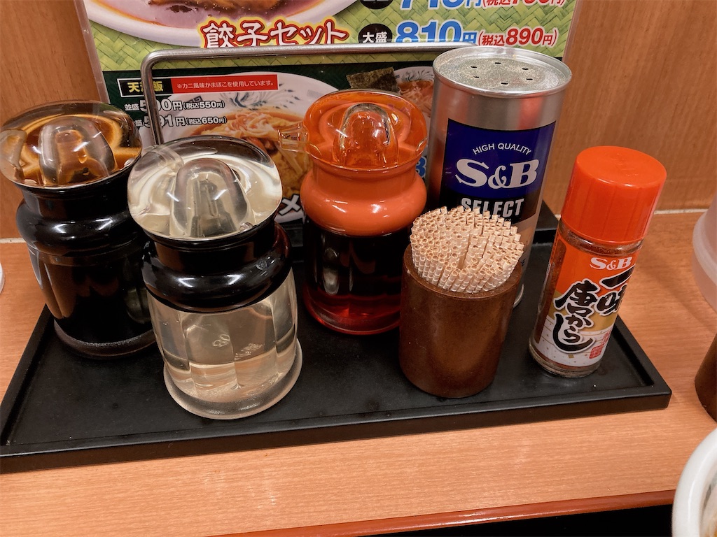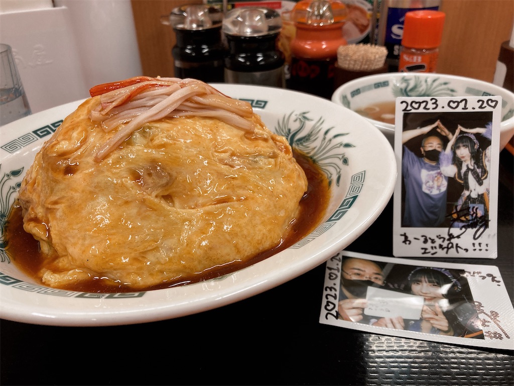 あんなに食べたけど、やっぱちゃんとごはん食べないとお腹空いたんで、日高屋で天津飯大盛りもぐもぐ! 川崎の日高屋には一味唐辛子がある!