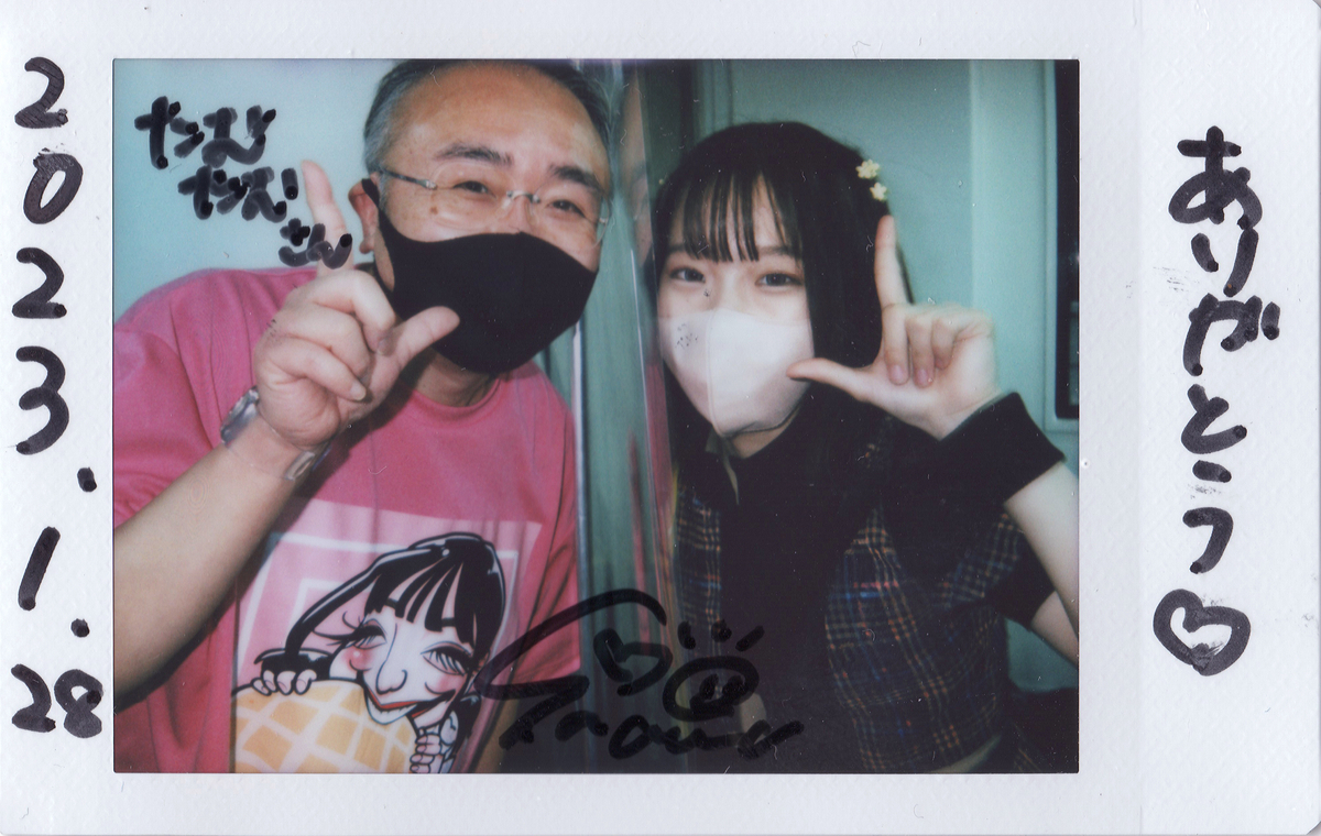からのさぁやちゃん。『先にさわちゃんとチェキ撮ってたから、推し変されたかと思ったー!』って。手を叩こうが上手にいる限りは推し変することはないから安心して← なぜかさぁやちゃんのも白飛びして撮り直したw