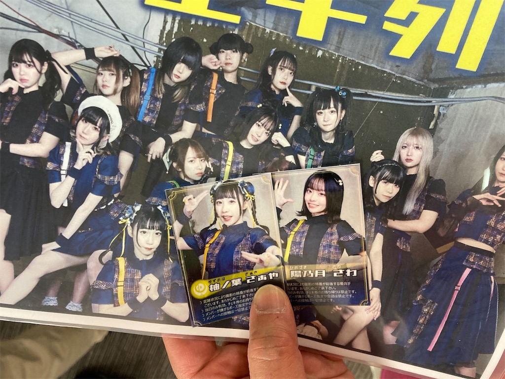 で、終演後物販。スプスラッシュはご新規さんスタンプラリーで2人とチェキ撮れるけど、ライトグリーンの子以外わかんないんでとりあえず1人だけ。チェキ券もらえるから3回は行こう。バブガは入場特典チェキ券だったんでアップグレードとランチェキA1枚で。