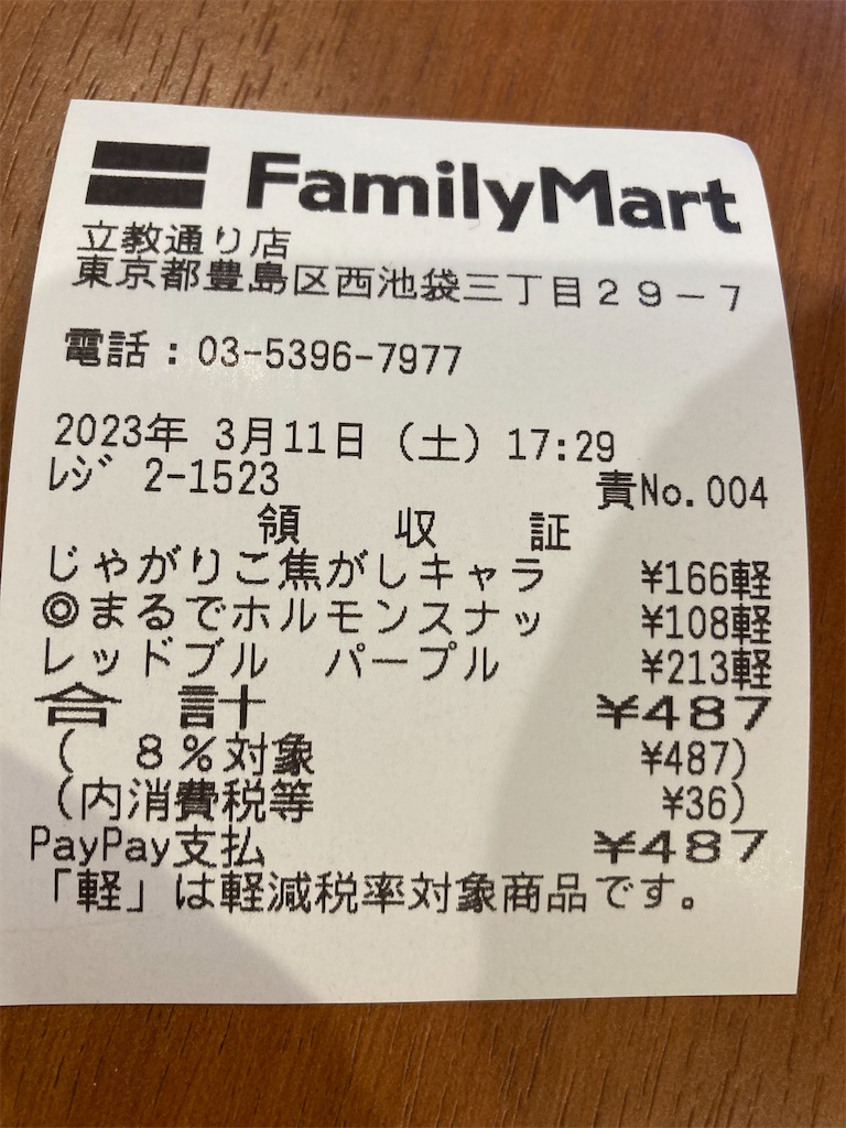 からの1時間半くらい空き時間。立教通りのファミマの2階のイートインコーナーが広いんで、そこで休憩しながらブログ書こう。お買い物は紫ブルとじゃがりこのきゃらめるさんとにんにく塩だれ味のスナック。